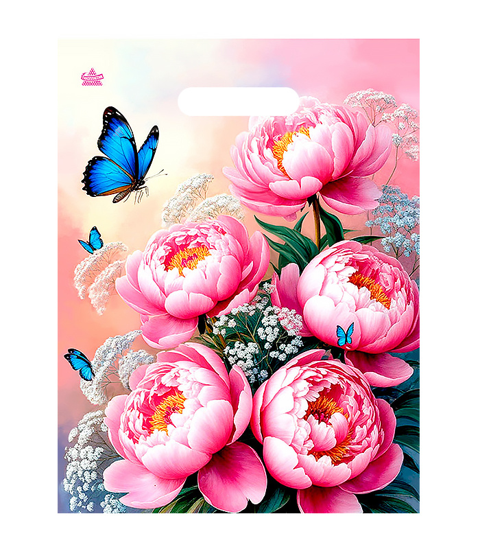 Пакет полиэтиленовый Изобилие пионов, с петлевой ручкой 38*42 см