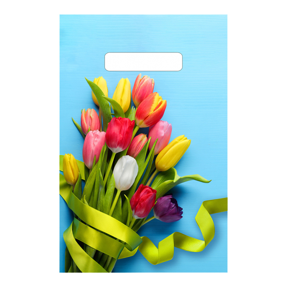Пакет полиэтиленовый Бутик Тюльпаны на голубом, вырубная ручка, 20*30 см