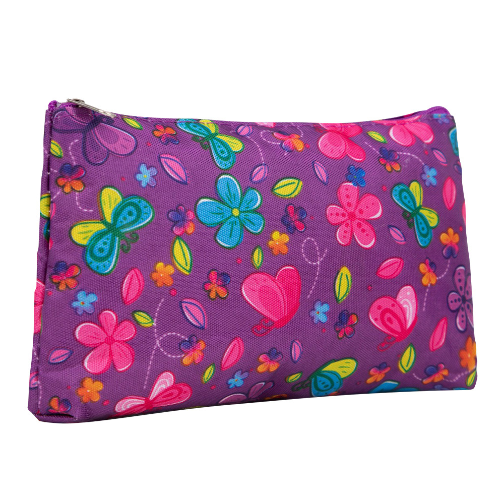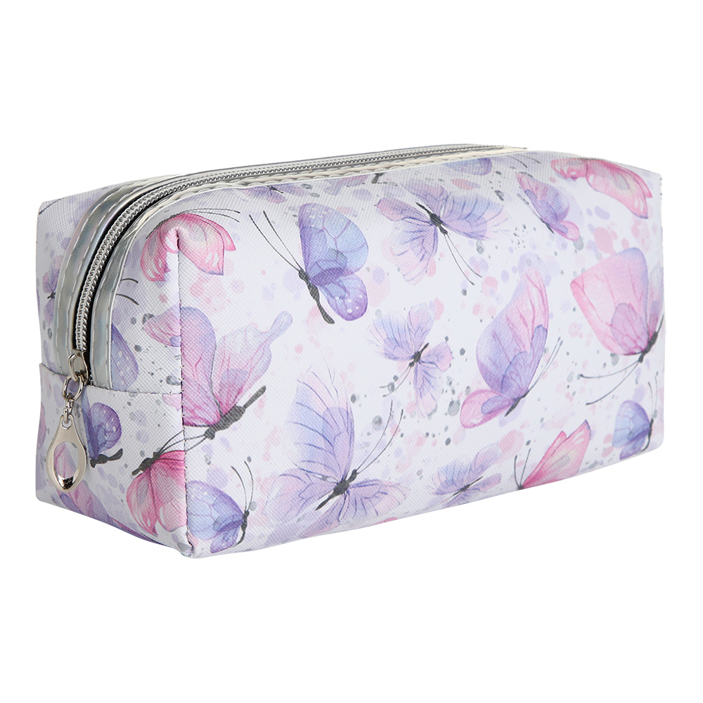 Косметичка 10188275 на молнии, Бабочки 19*6*9 см, текстиль, белый-сиреневый