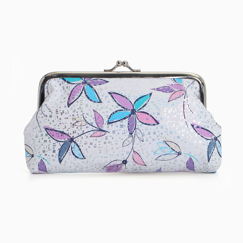 Косметичка 10658674 на фермуаре, маленькая, с цветочным принтом 17*2*10 см, искусственная кожа, фиолетовая