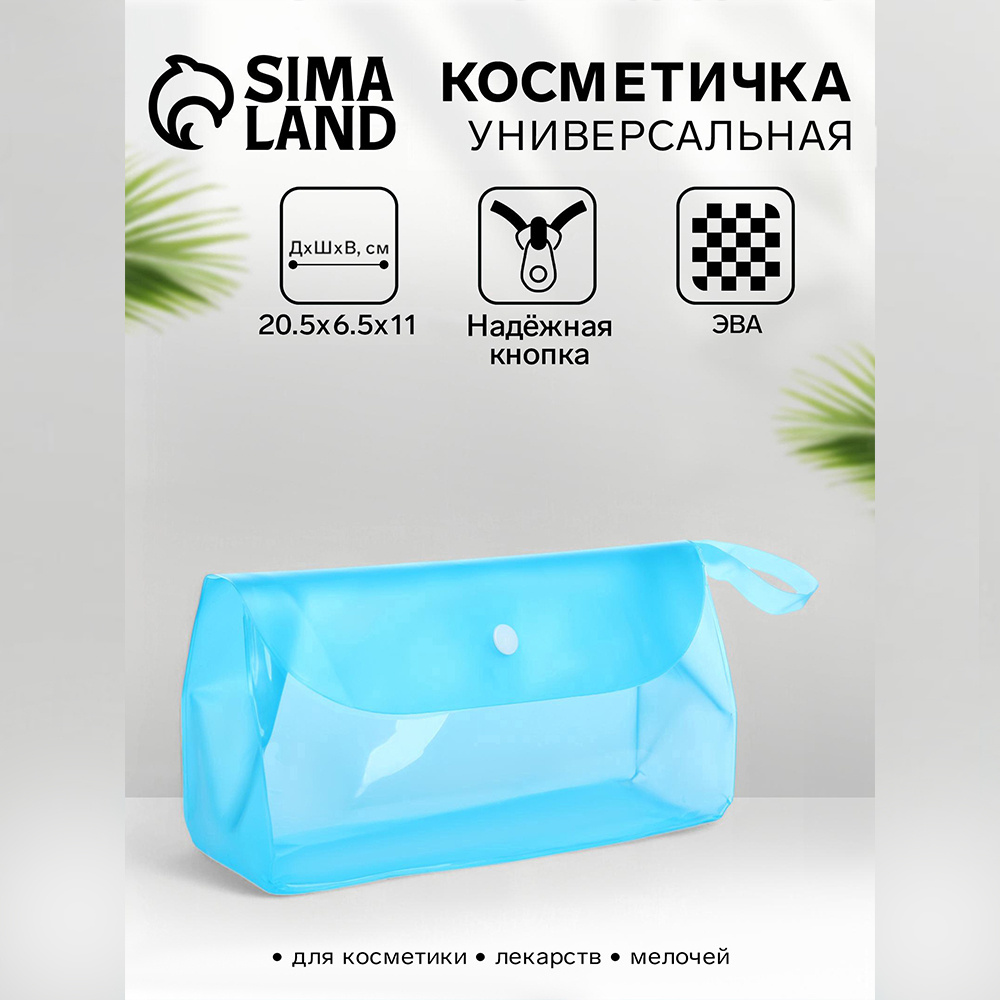 Косметичка 10653537 на кнопке для бассейна, с ручкой, 20,5*6,5*11 см, голубая, прозрачная