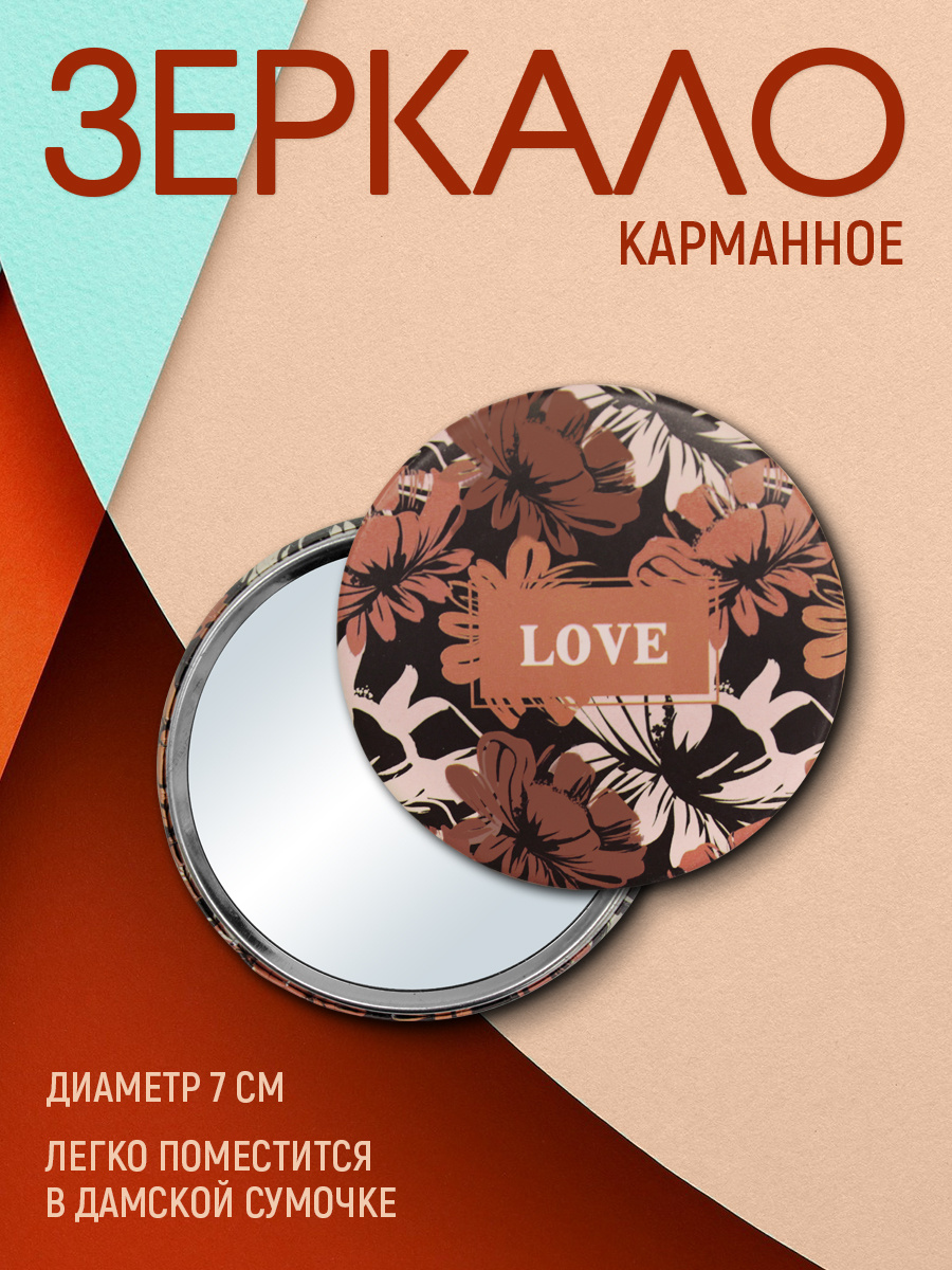 Зеркало ZCDE-12 карманное, круглое 7 см, металл, коричневый