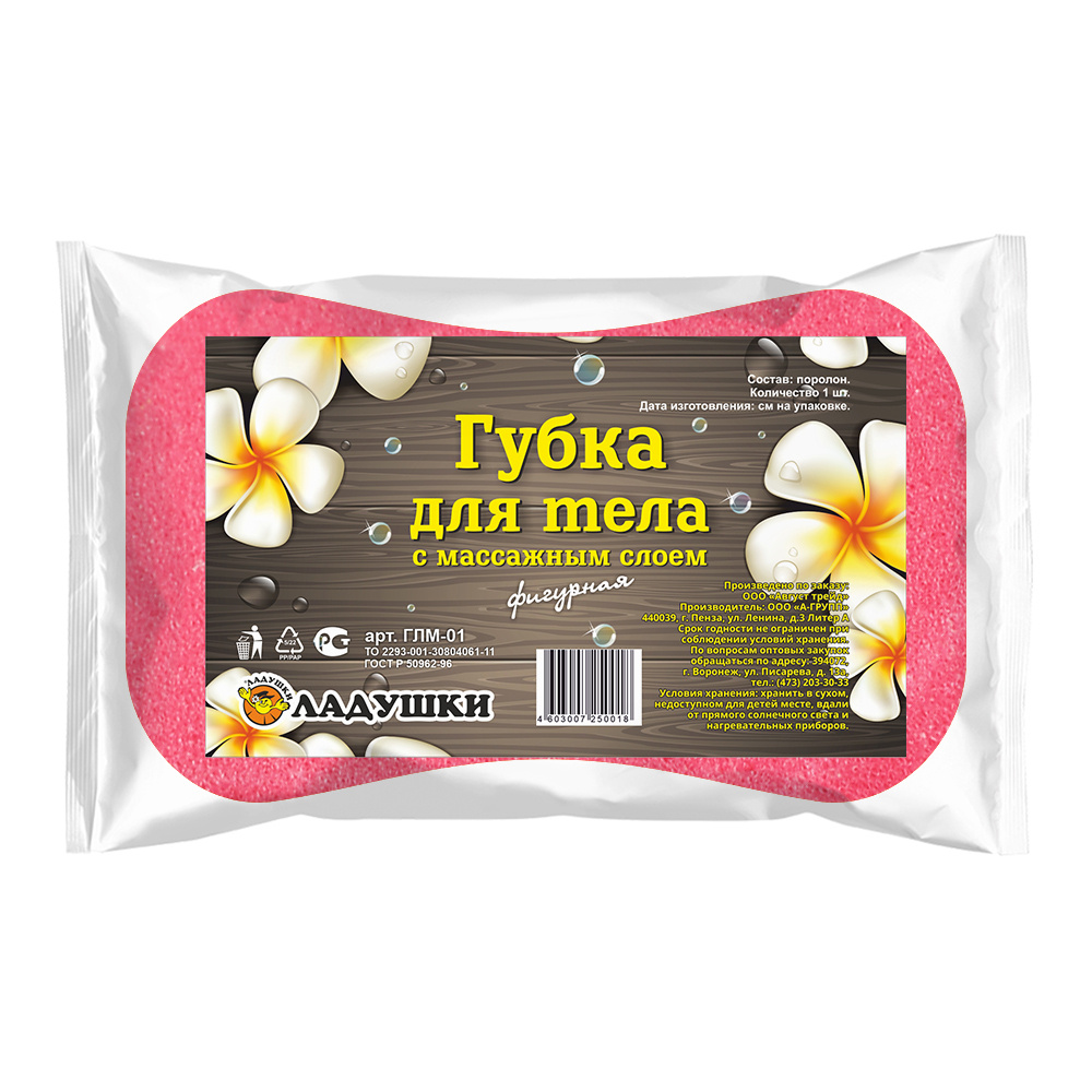 Губка для тела Ладушки ГЛМ-01 с массажным слоем фигурная, розовый
