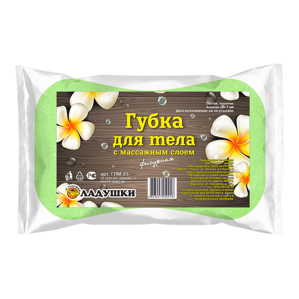 Губка для тела Ладушки ГЛМ-01 с массажным слоем фигурная, салатовый