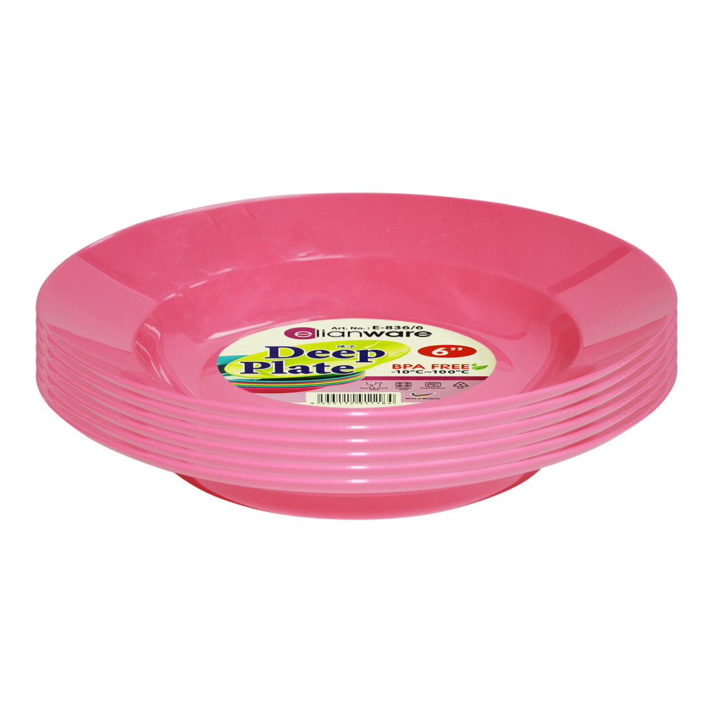 Набор детских плоских тарелок Е-836/6 пластик, 15,5 см, набор 6 шт, розовый