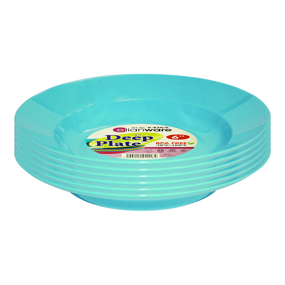Набор детских плоских тарелок Е-836/6 пластик, 15,5 см, набор 6 шт, голубой