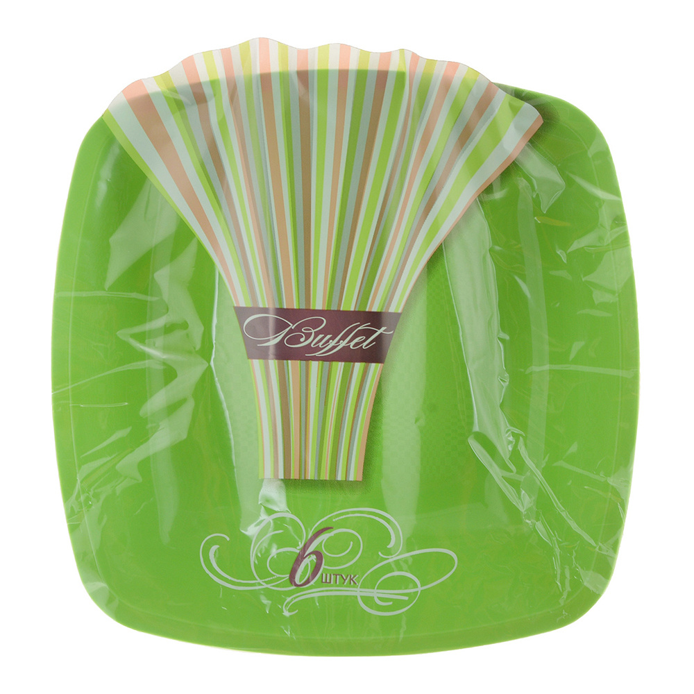 Одноразовая посуда тарелка Мистерия, 180 мм, полипропилен, зеленый, 6 шт