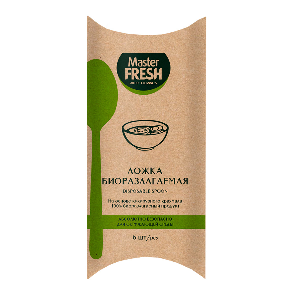 Одноразовая посуда ложка Master Fresh ЭКО биоразлагаемая из кукурузы, 165 мм, 6 шт