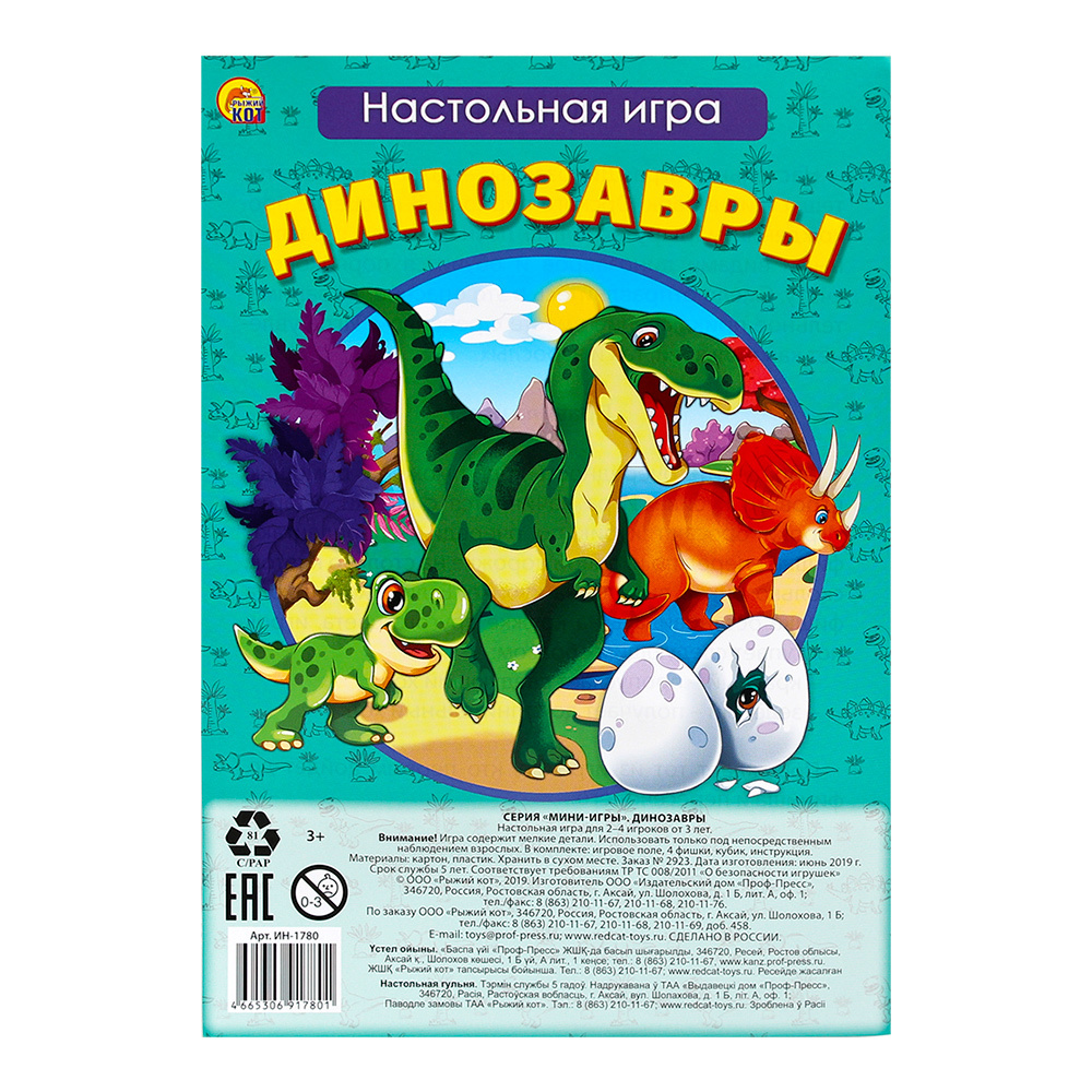 Настольная игра ИН-1780 Динозавры, картон, 1 шт