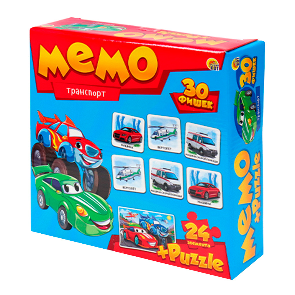 Настольная игра МП-0370 Мемо 30 фишек + пазлы 24 элемента, Транспорт