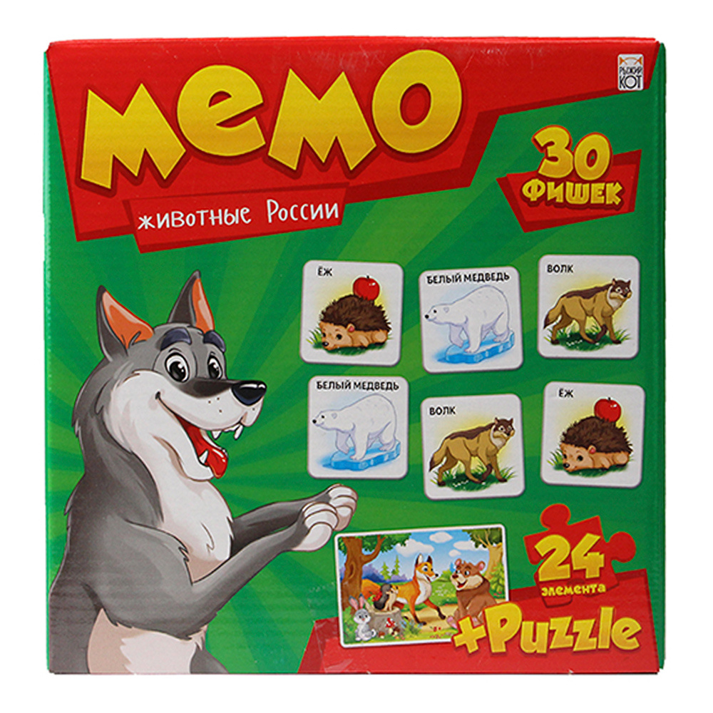Настольная игра МП-0370 Мемо 30 фишек + пазлы 24 элемента, Животные России