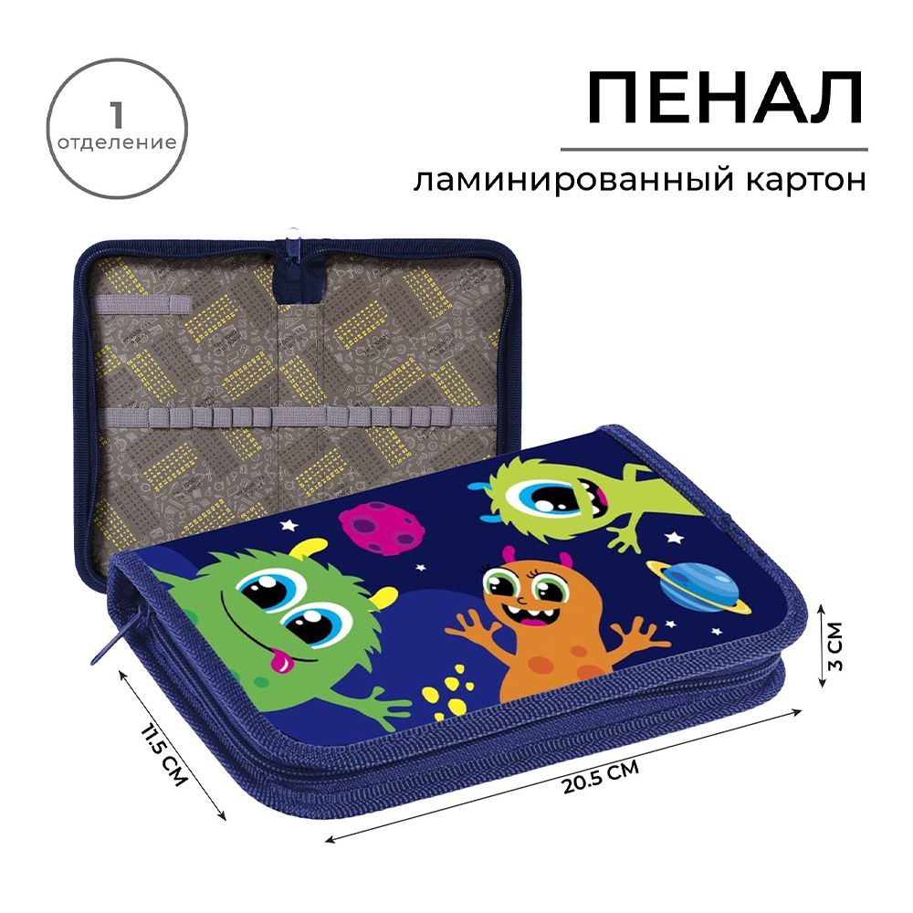 Пенал Calligrata 9308138 Монстрики, 1 секция, 115*205*30 мм, ламинированный картон