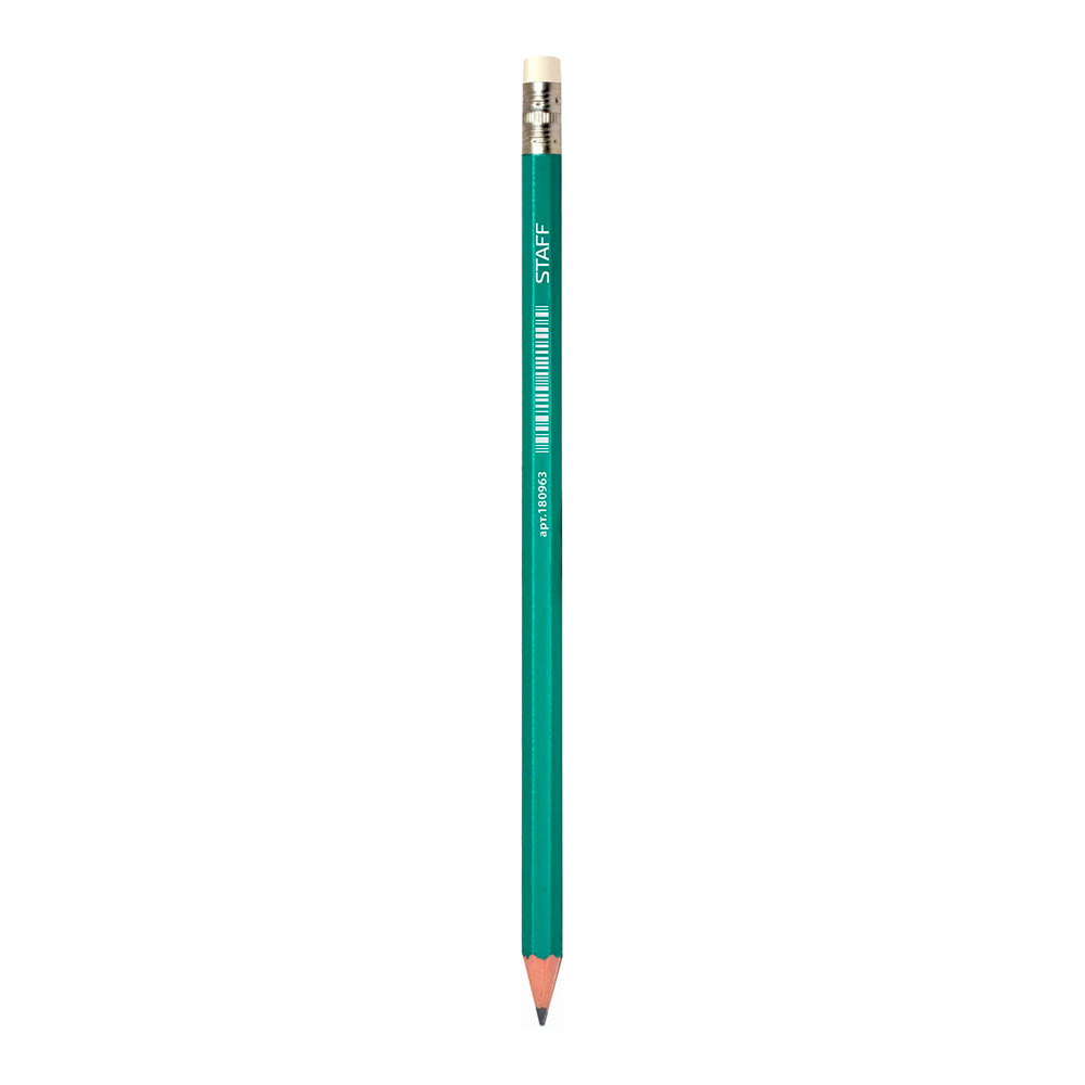 Карандаш чернографитовый Staff 180963 НВ, ластик, зеленый
