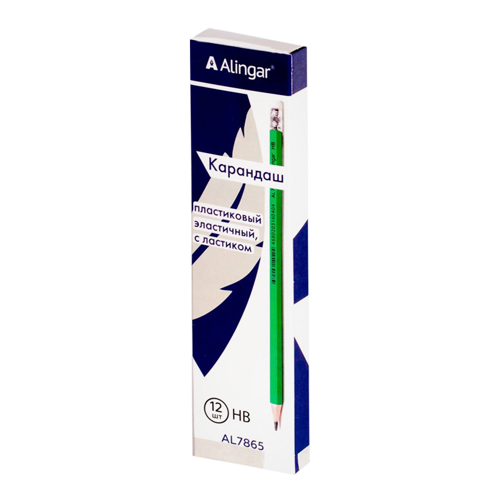 Карандаш чернографитный Alingar AL655 НВ, эластичный, с ластиком, шестигранный, пластиковый, цвет корпуса зеленый, 1 шт