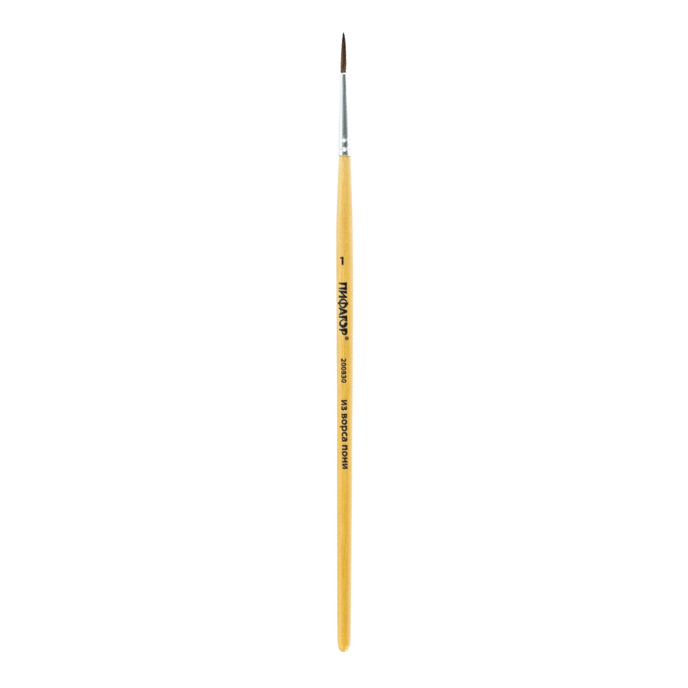 Кисть для рисования Пифагор 200830 №1, круглая, пони, деревянная ручка, 1 шт