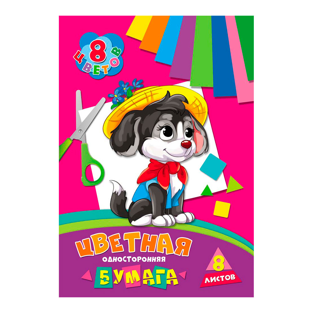 Бумага цветная Проф-Пресс 08-9433 8 цветов Щенок, 8 листов