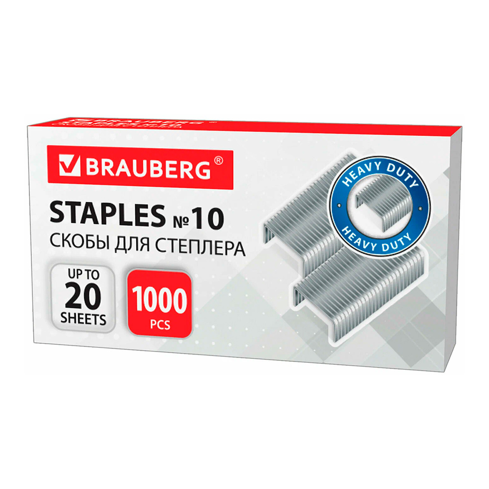 Скобы для степлера Brauberg 220949 №10 до 20 листов, 1000 шт