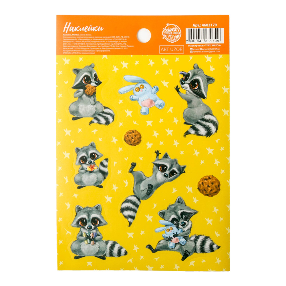 Наклейки 4683179 Бумажные Милые енотики 11*16 см