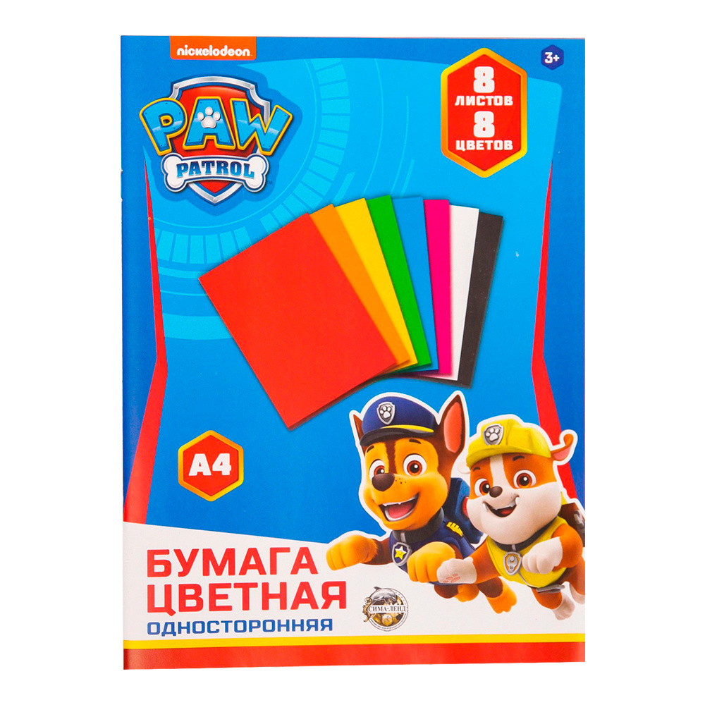 Бумага цветная Paw Patrol 4437457 8 цветов А4, 8 листов