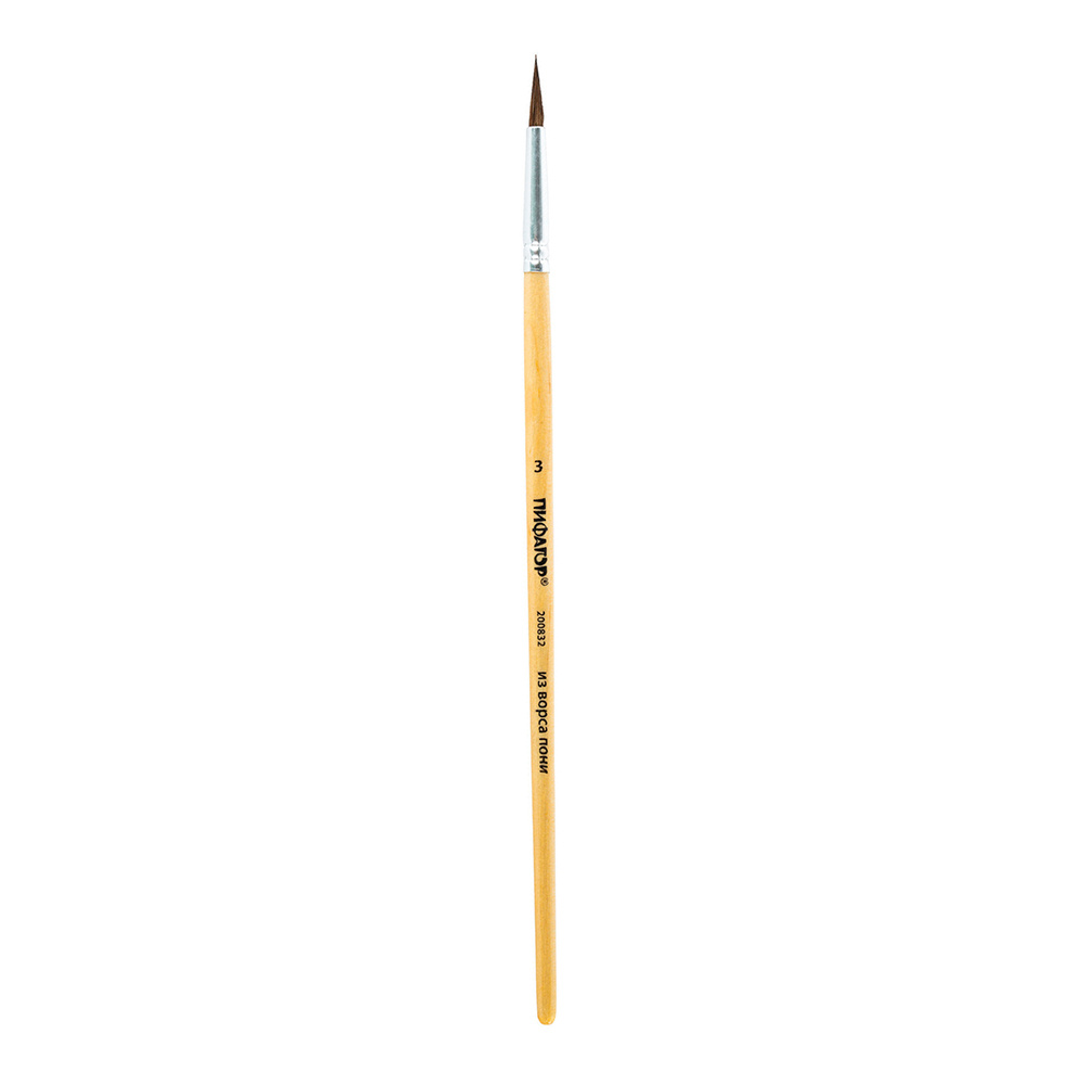 Кисть для рисования Пифагор 200832 №3, круглая, пони, деревянная ручка, 1 шт