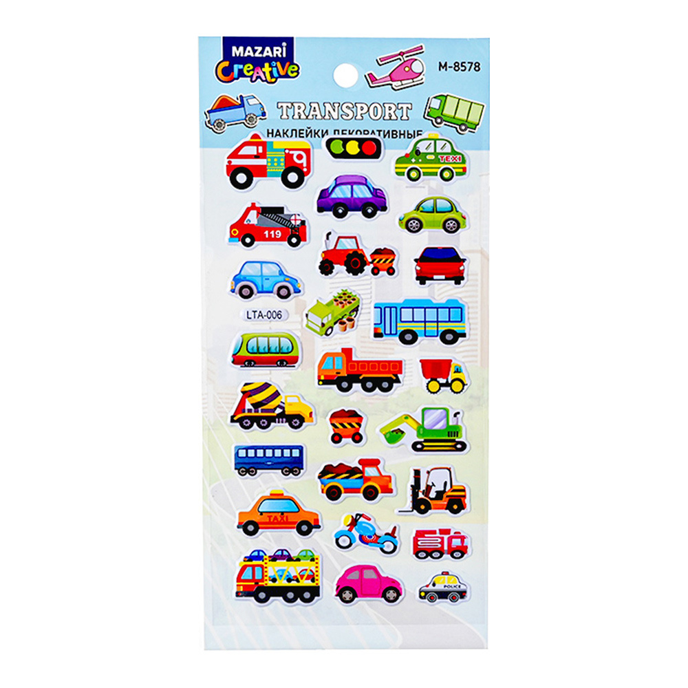 Наклейки M-8578 Машинки объемные, 6 дизайнов 10*22 см