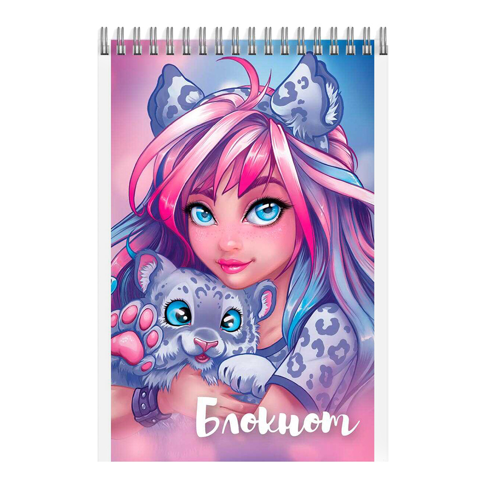 Блокнот 62955 А7 гребень Девушка с барсом, белый офсет, 40 листов