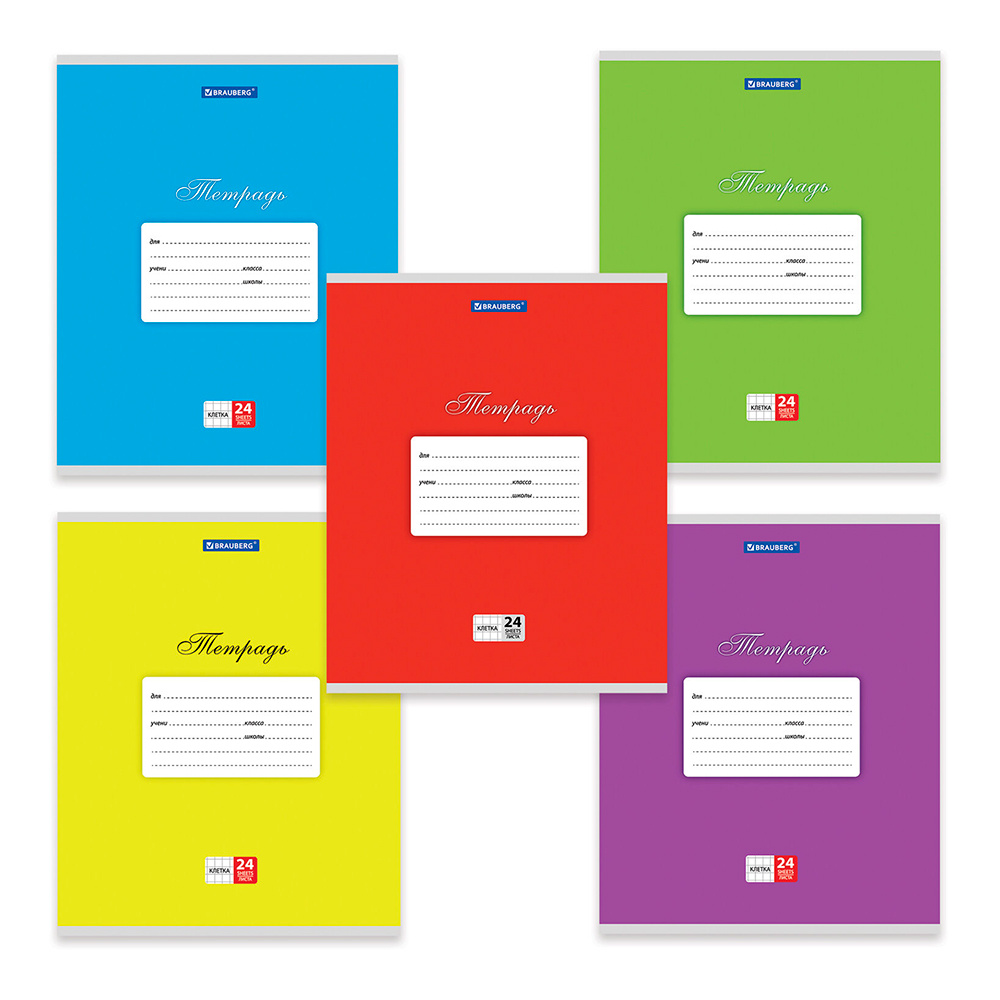 Тетради Brauberg 105702 24 листа, клетка, однотонная, ассорти 5 видов, 1 шт