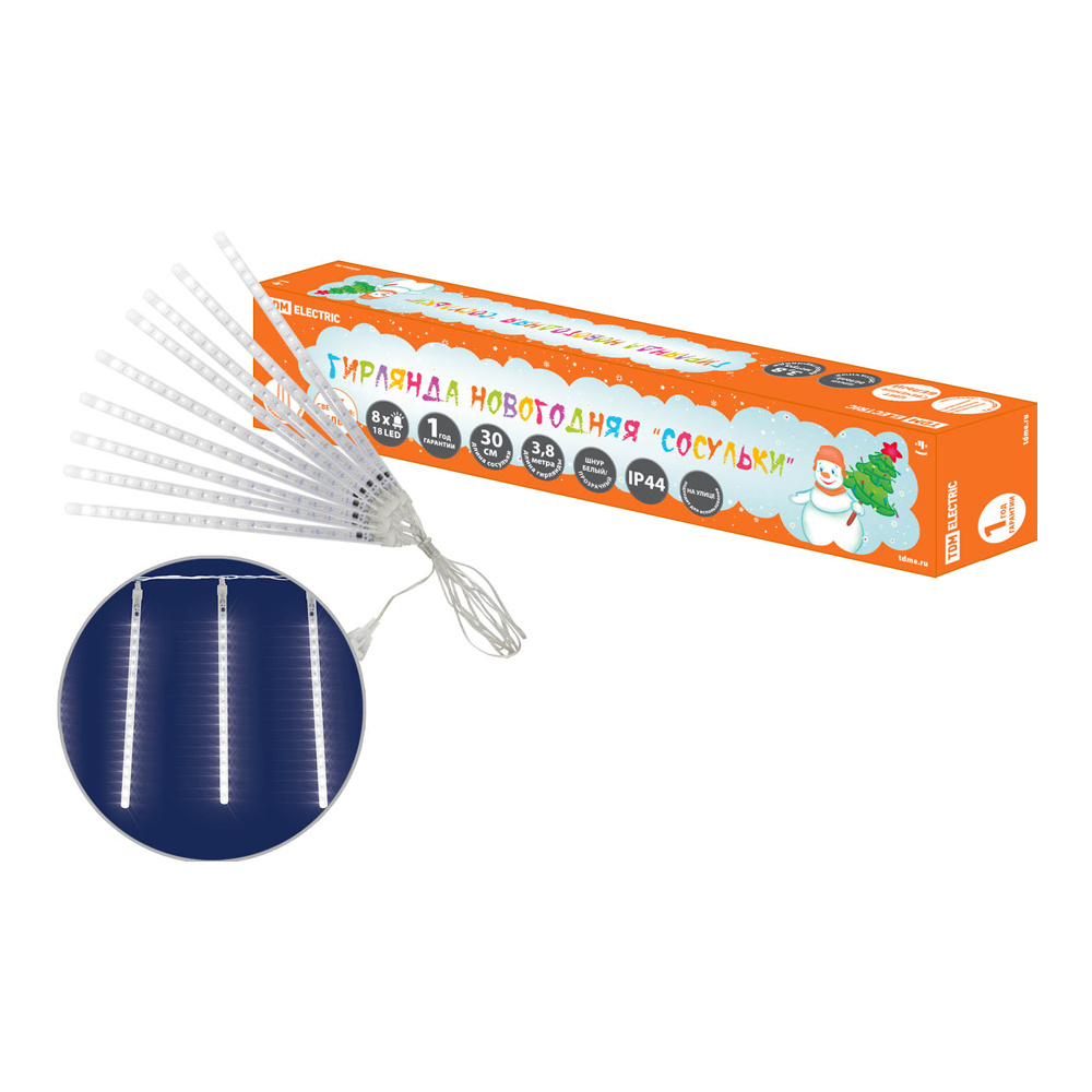 Новогодняя Гирлянда электрическая TDM Сосульки 8шт 3,8м белый свет