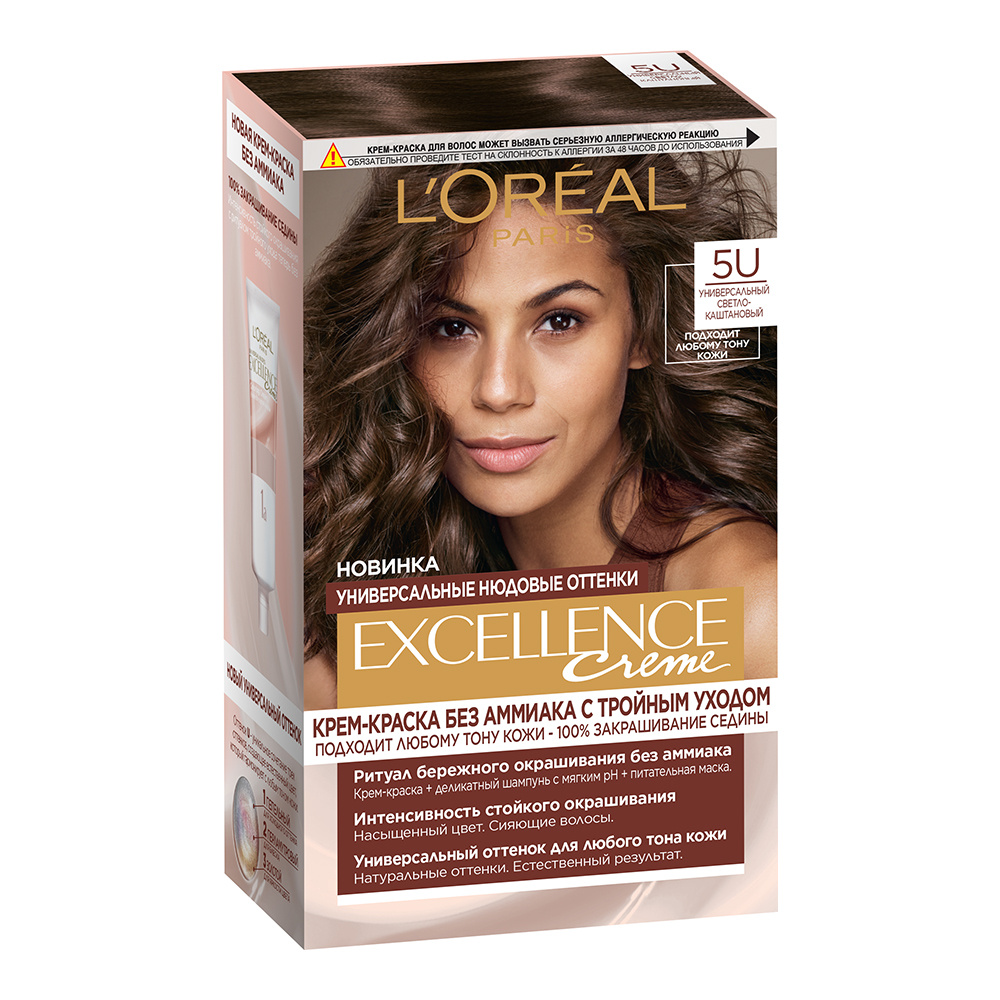 Краска для волос L'Oreal Excellence Creme без аммиака тон 5 U, Универсальный светло-каштановый