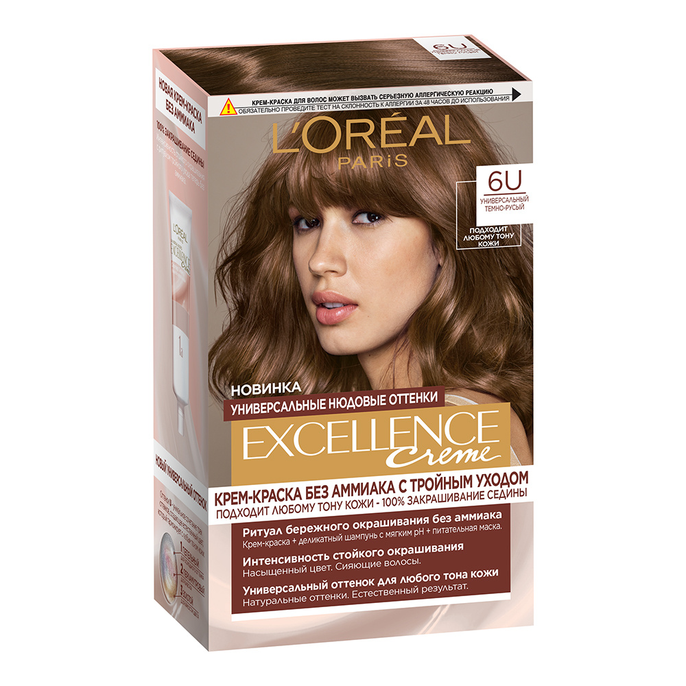 Краска для волос L'Oreal Excellence Creme без аммиака тон 6 U, Универсальный темно-русый