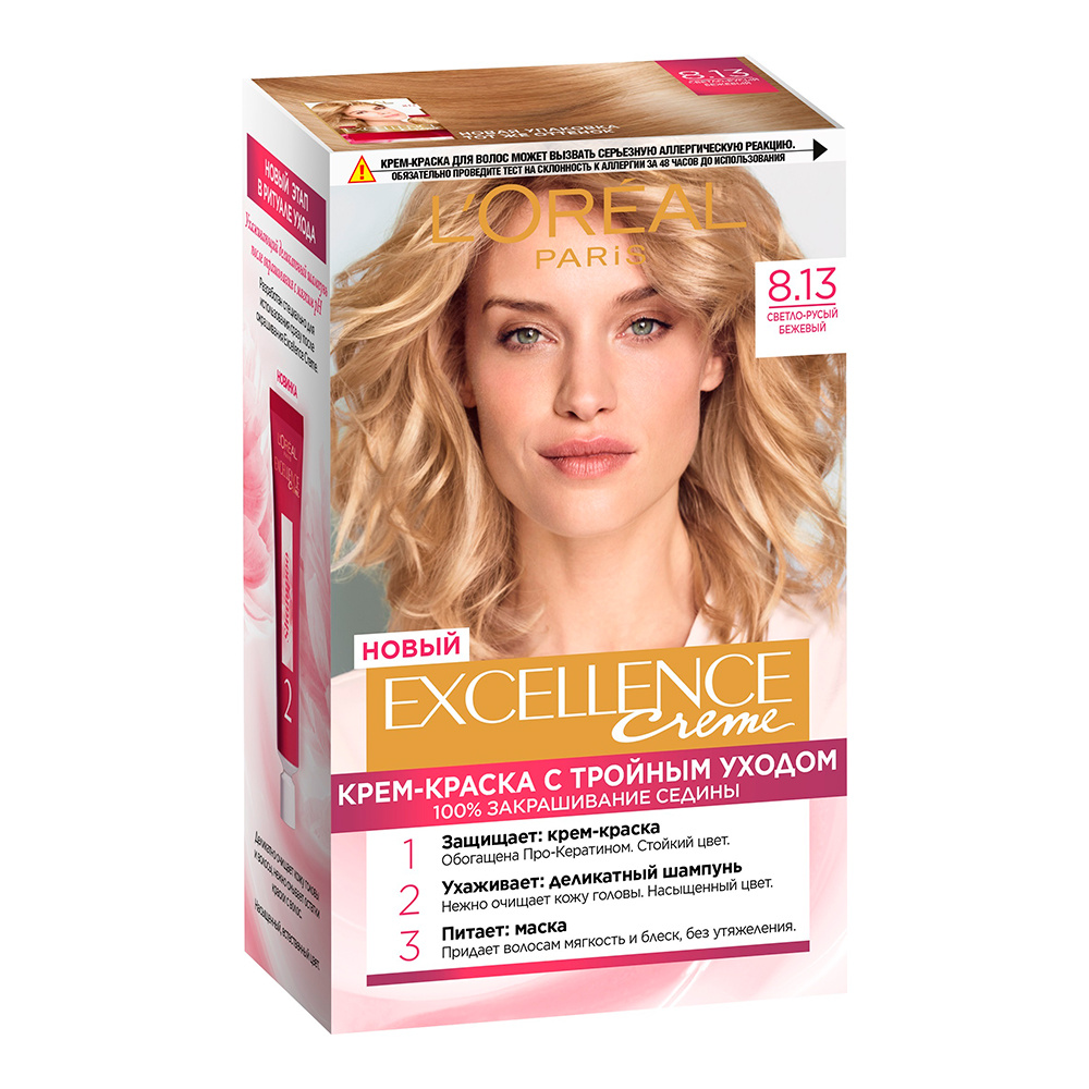 Краска для волос L'Oreal Excellence Creme Creme тон 8.13, светло-русый бежевый, 192 мл