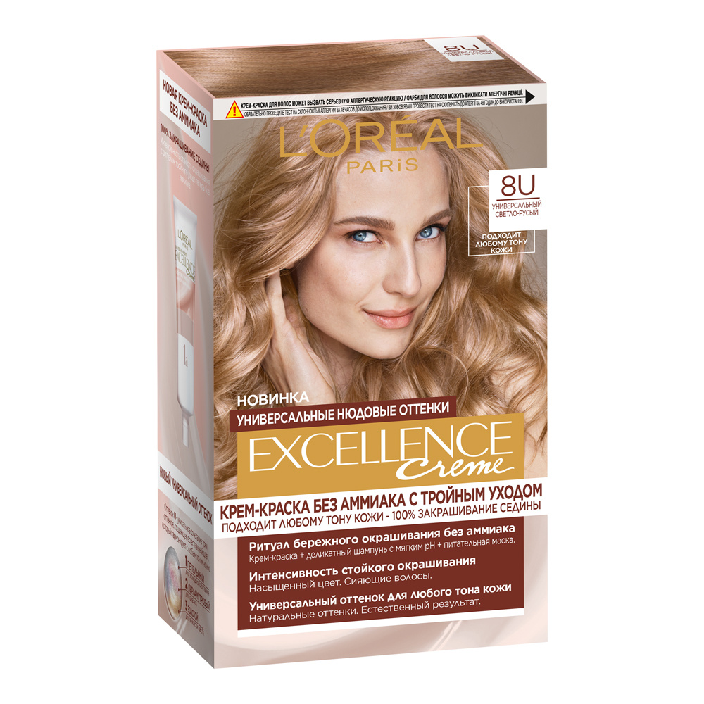 Крем-краска для волос L'Oreal Excellence Creme без аммиака тон 8U, светло-русый, 192 мл