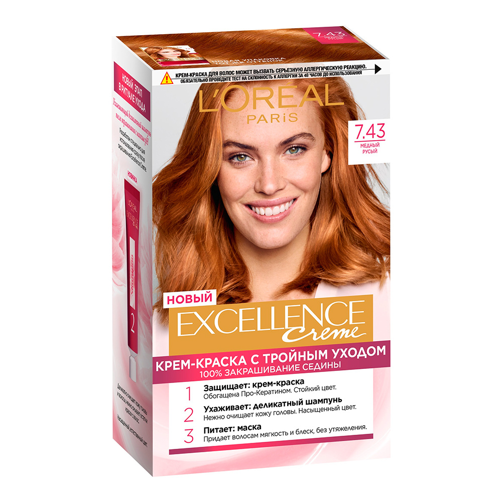 Краска для волос L'Oreal Excellence Creme Creme тон 7.43, медный русый, 192 мл