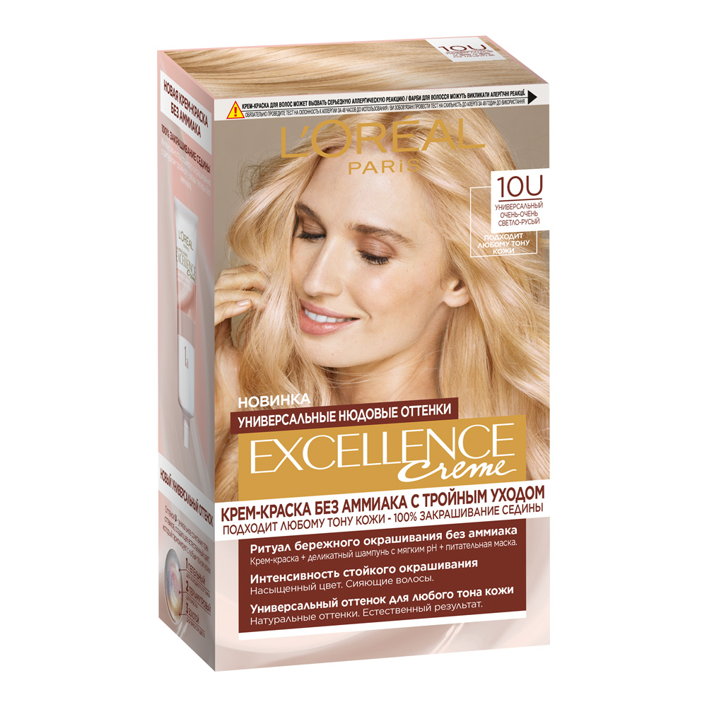 Крем-краска для волос L'Oreal Excellence Creme без аммиака тон 10U, очень-очень светло-русый, 192 мл