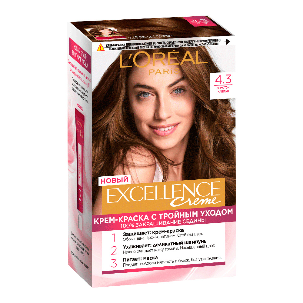 Краска для волос L'Oreal Excellence Creme Creme тон 4.3, золотой каштан, 192 мл
