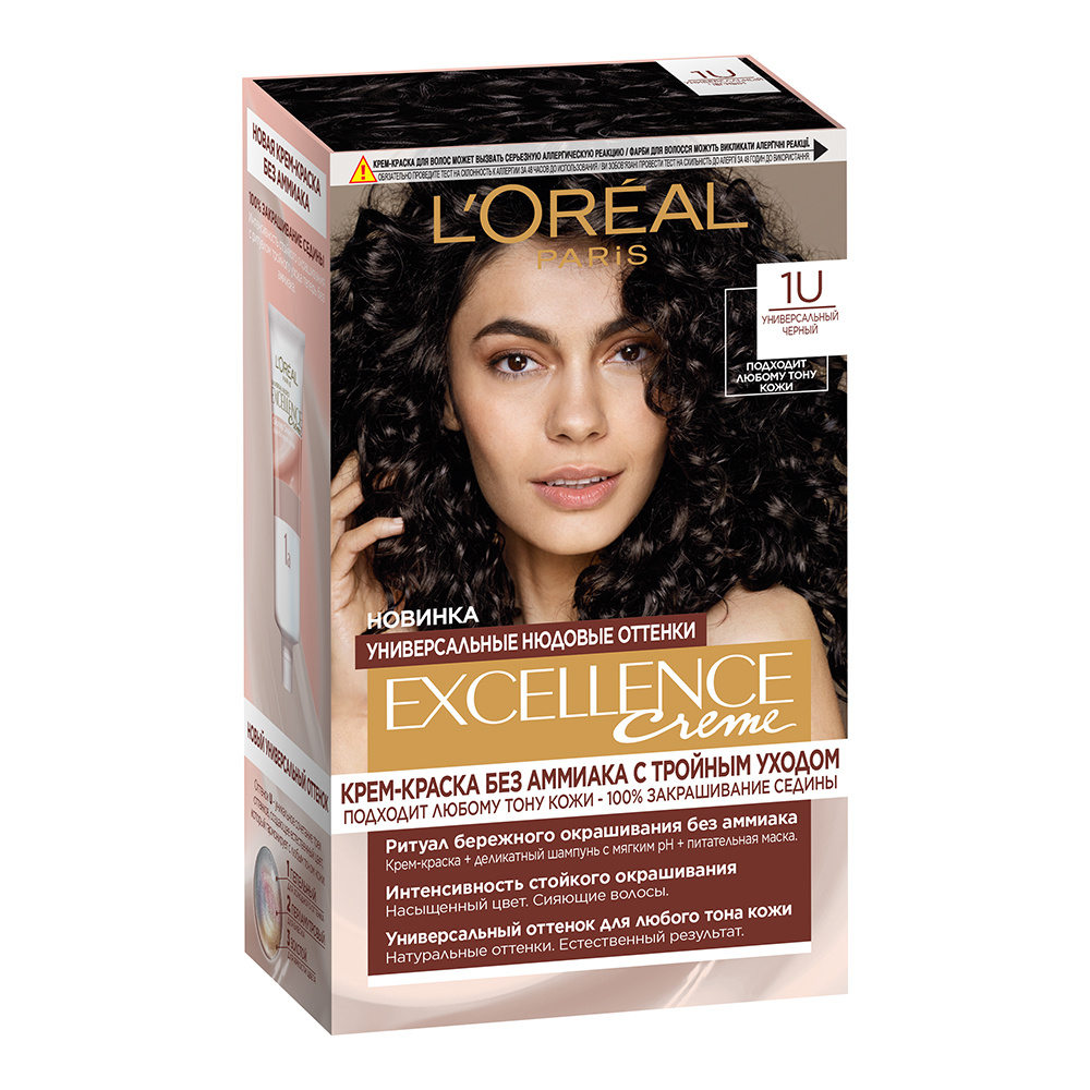 Краска для волос L'Oreal Excellence Creme без аммиака тон 1 U, Универсальный черный