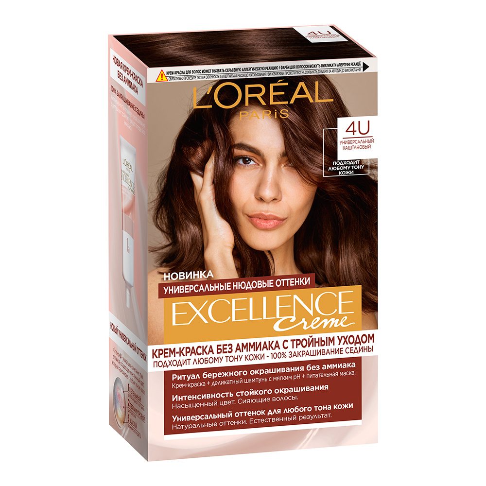 Крем-краска для волос L'Oreal Excellence Creme без аммиака, универсальный тон 4U, каштановый