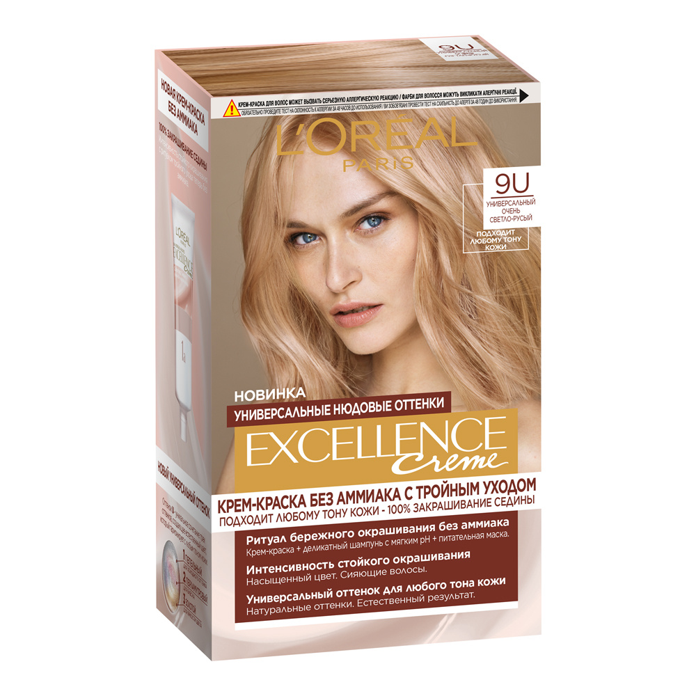 Крем-краска для волос L'Oreal Excellence Creme без аммиака тон 9U, очень светло-русый, 192 мл