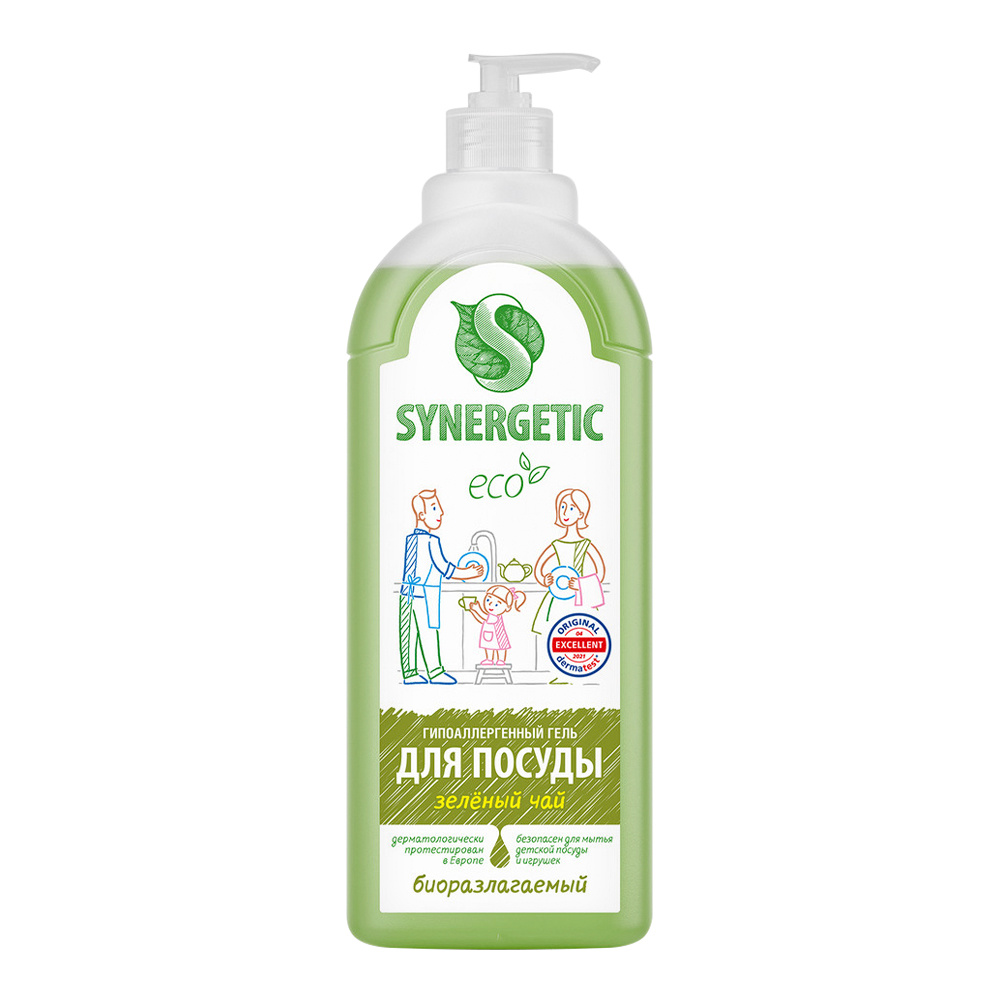 Средство для мытья посуды SYNERGETIC Эко биоразлагаемый с ароматом, зеленого чая, гипоаллергенный, 1 л