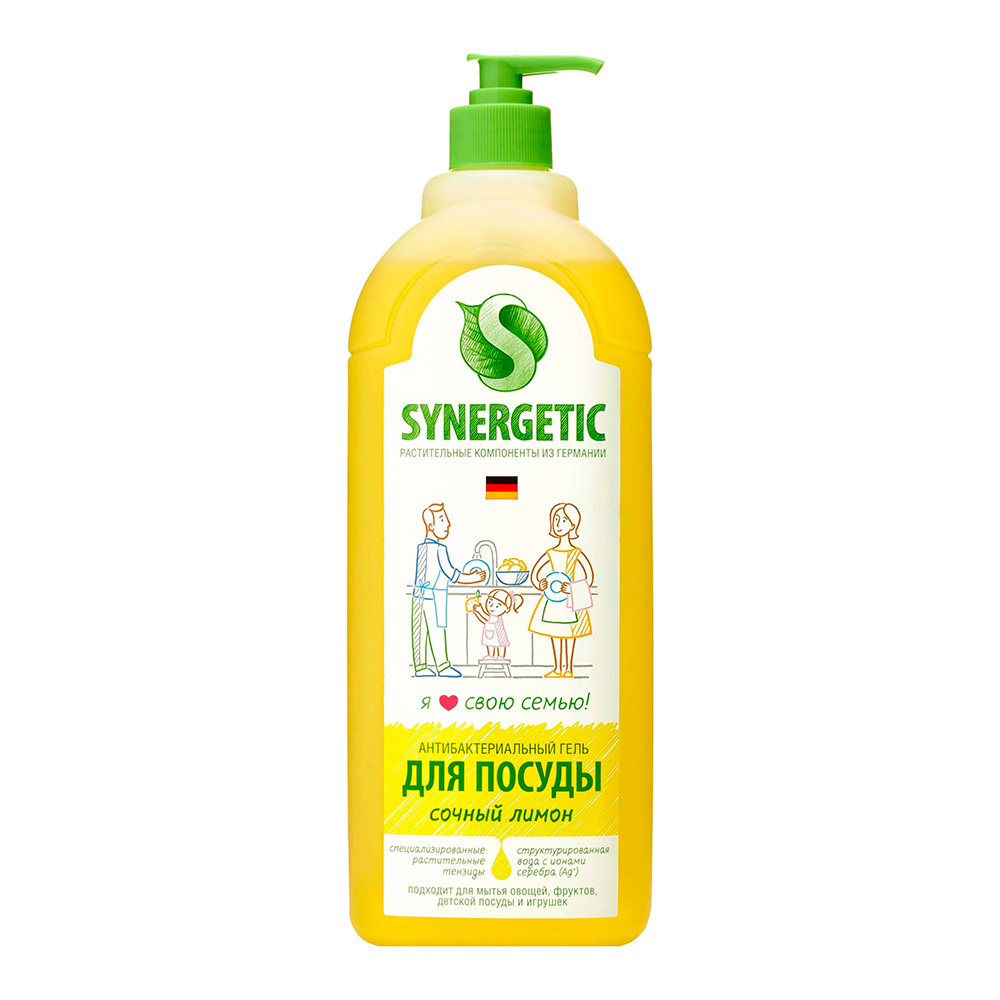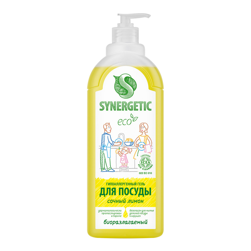 Средство для мытья посуды SYNERGETIC лимон, дозатор, 500 мл