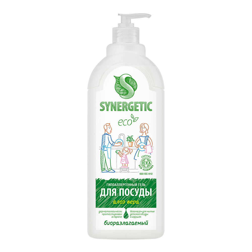 Средство для мытья посуды SYNERGETIC Эко с ароматом алоэ, гипоаллергенный, биоразлагаемый, 1 л