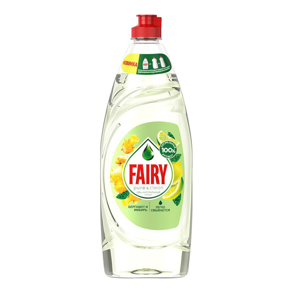 Средство для мытья посуды Fairy Pure&Clean бергамот и имбирь, 650 мл