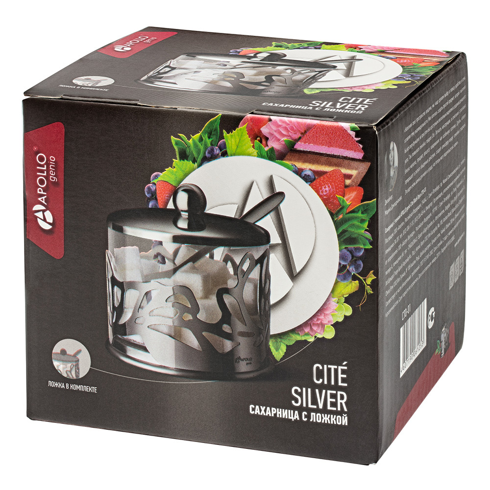 Сахарница с ложкой Apollo Cite Silver