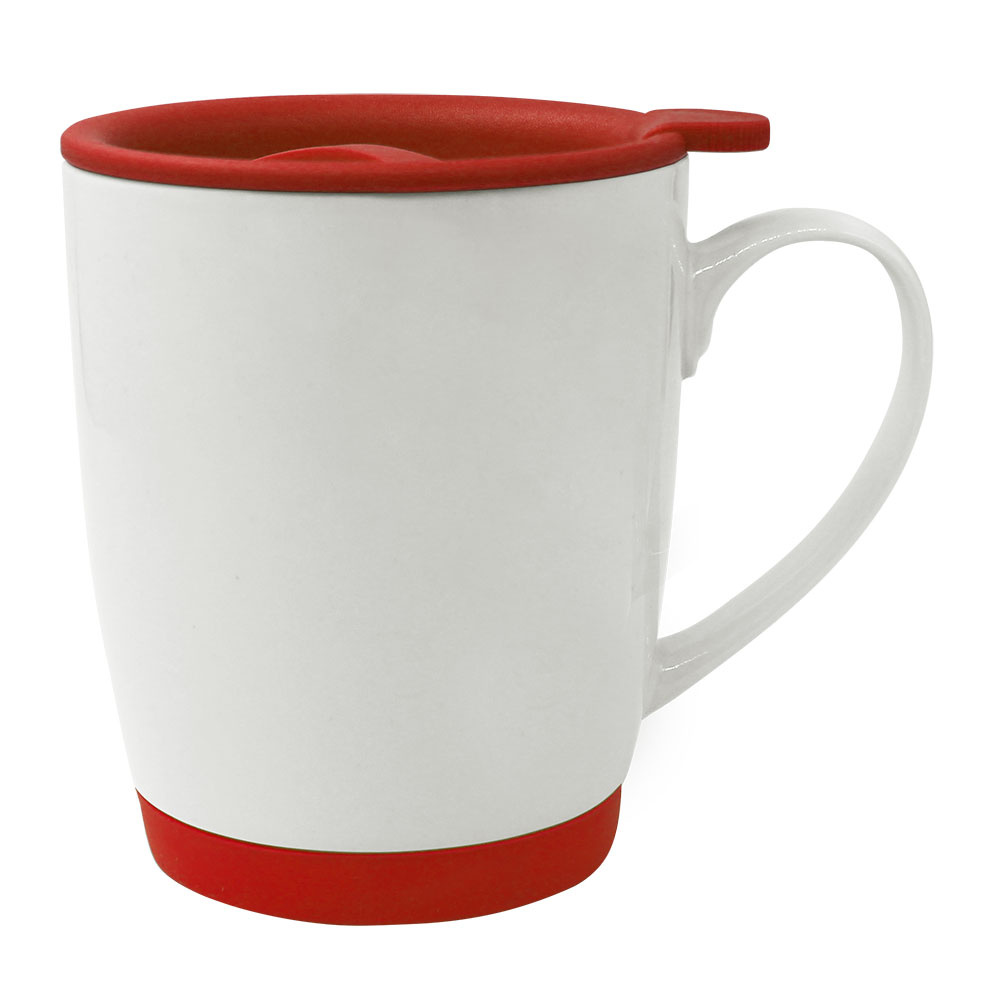 Кружка керамическая KKR-207 с пластиковой крышкой, красный, 400 мл