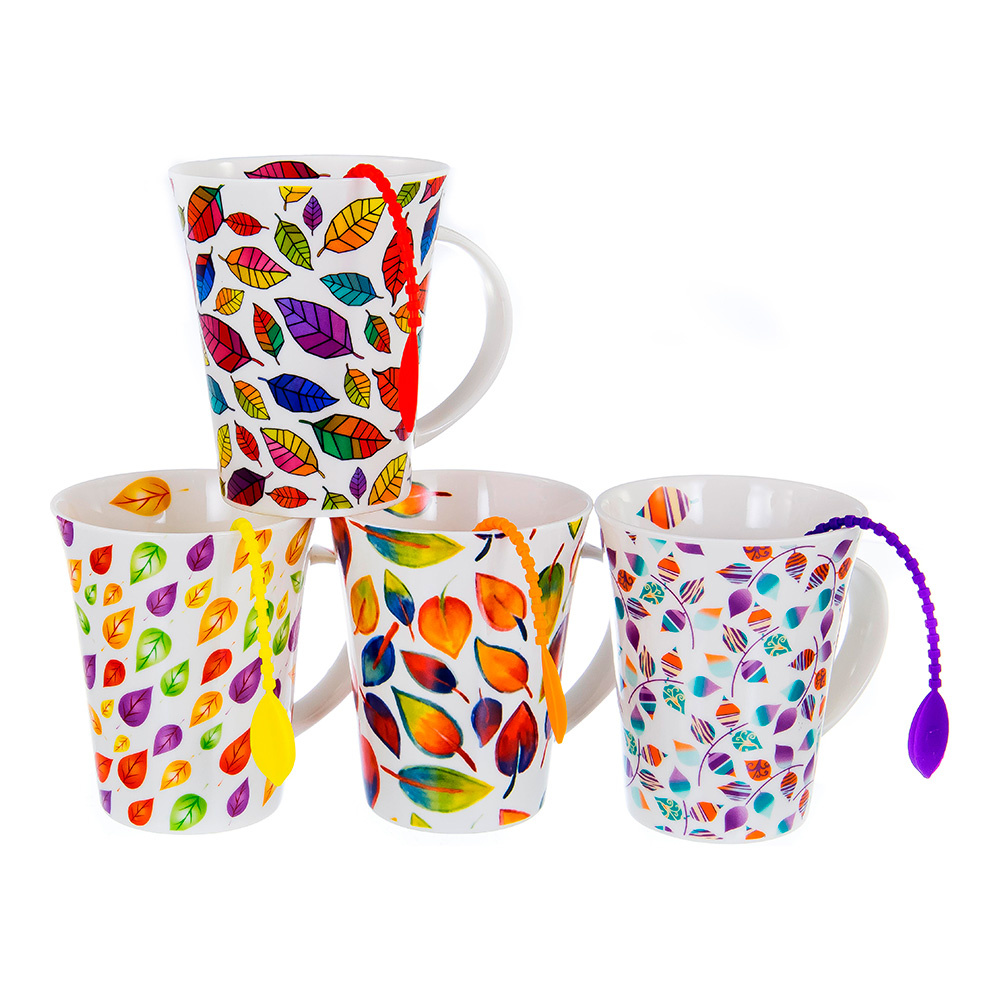 Кружка керамическая 144-09004 Листья с силиконовым ситечком подарочная упаковка, 380 мл