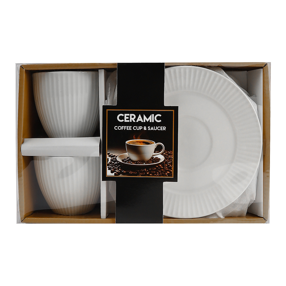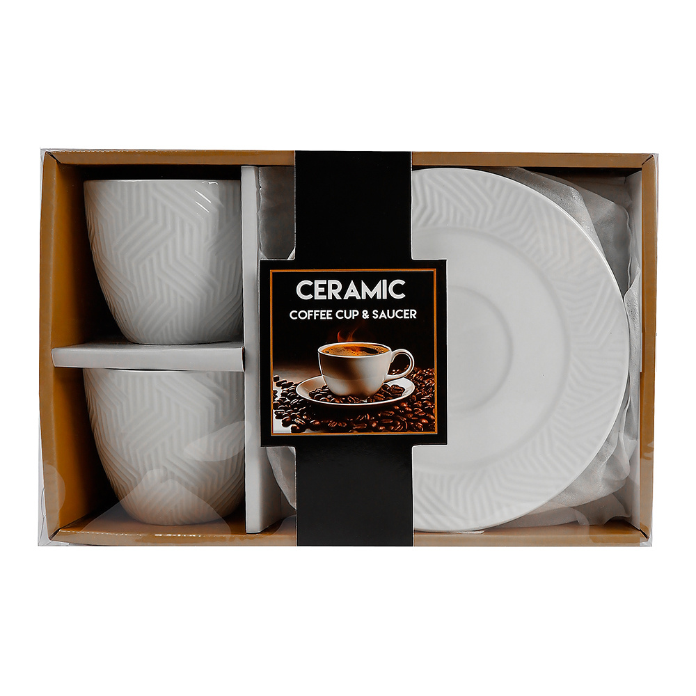 Набор чайный MTH-FD-K009(04) 4 предмета, кружка 250 мл + блюдце, цвет: белый, керамика