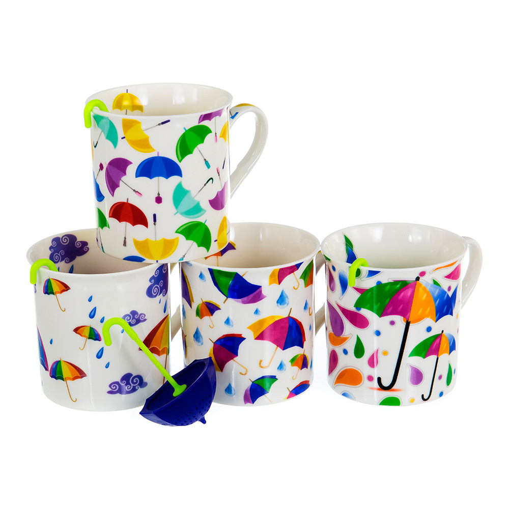 Кружка керамическая 144-09007 Зонтики с силиконовым ситечком подарочная упаковка, 300 мл