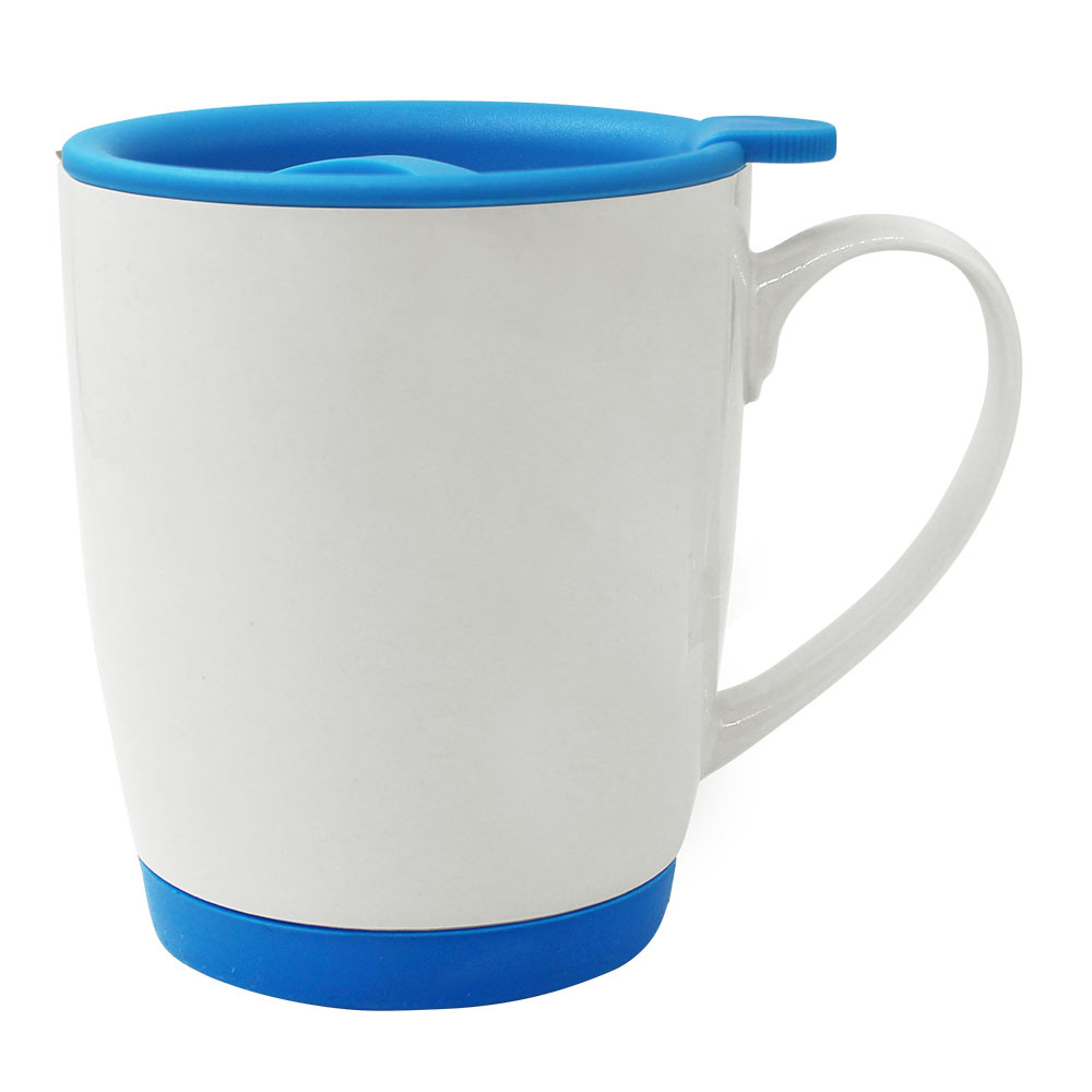 Кружка керамическая KKR-207 с пластиковой крышкой, голубой, 400 мл