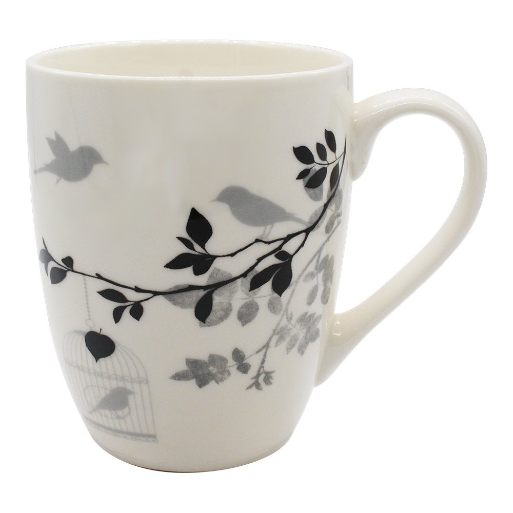 Кружка керамическая KKR-174 Птицы, деревья, черно-белый, 340 мл