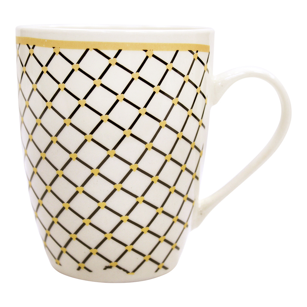 Кружка для чая и кофе Золотой узор Вертикал полосы 320мл, керамика